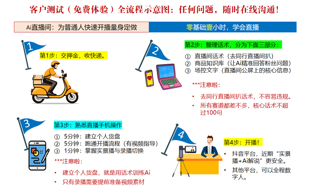 在双方约定的试用期限结束之后,对试用满意的客户需要尽快付清余款,并由我方为客户开通专属直播账号.