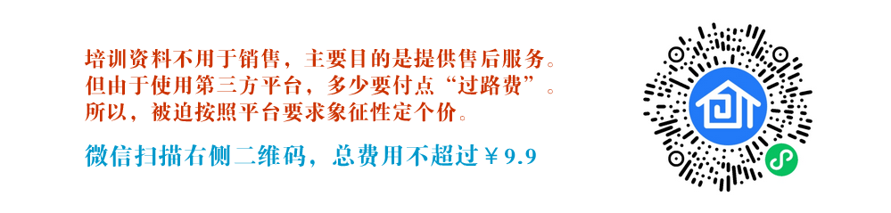 短视频很简单,大部分视频就是八九分钟,甚至更短。既能方便代理商快速掌握直播系统使用,也能方便代理商向终端客户提供具体操作上的培训,具体参见下方视频,尤其是视频末尾的信息(如何找到我们的培训资料)。【注:培训资料不是为了卖钱,主要是提供售后服务。但是由于使用第三方平台,多少要付点“过路费”。所以,会看到有定价】微信扫描以下二维码,可以减免大部分费用。
