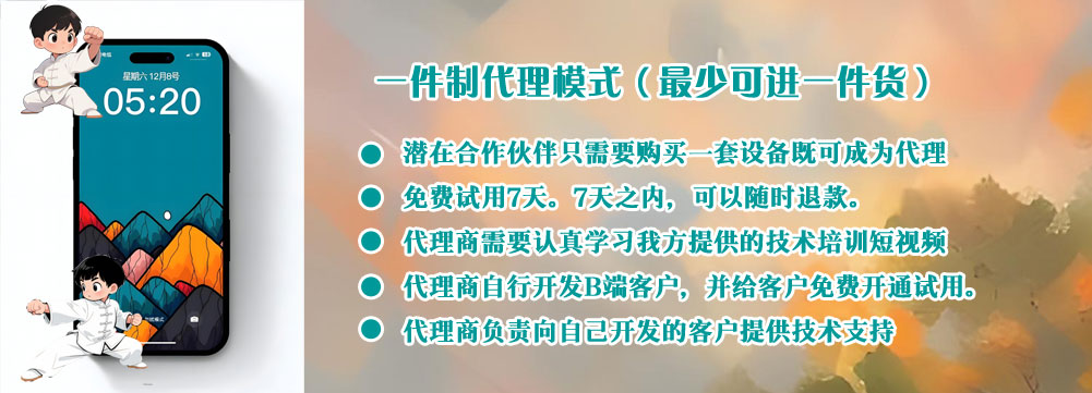 最少只进一件货,就可以成为我们产品的代理。和网上割韭菜的产品不同,我们的产品都可以免费试用七天(需要付押金。试用期结束,退回测试设备,立刻返还押金。)。